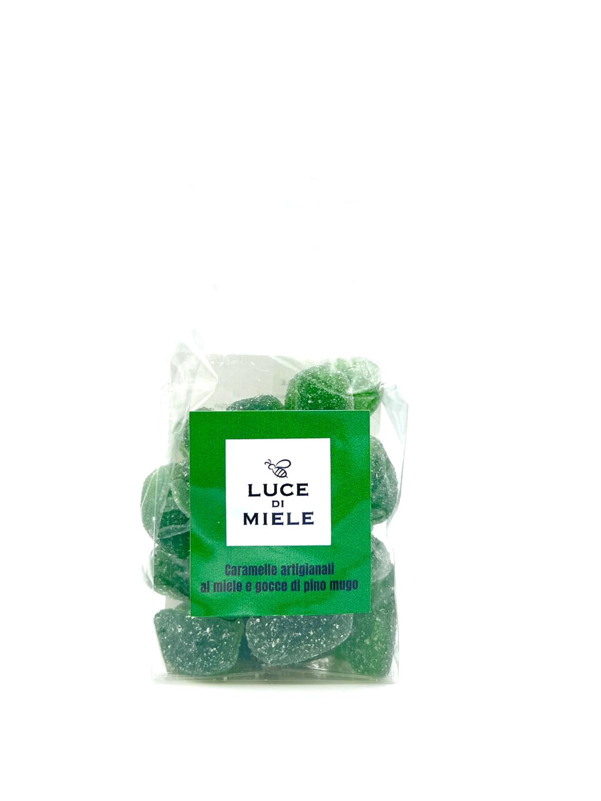 Caramelle Luce di Miele: miele di montagna e pino mugo. Balsamiche, fresche e naturali, perfette per la gola e il respiro.