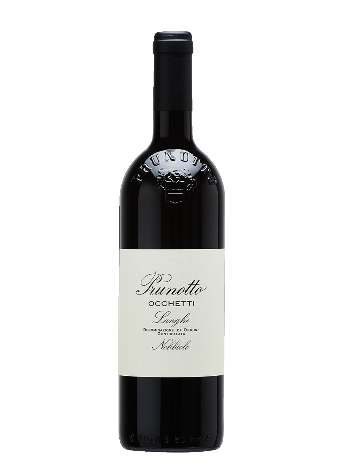 Prunotto Occhetti, Nebbiolo delle Langhe, rosso elegante, profumi di lampone e spezie, morbido e armonico, ideale con primi saporiti e carni bianche.