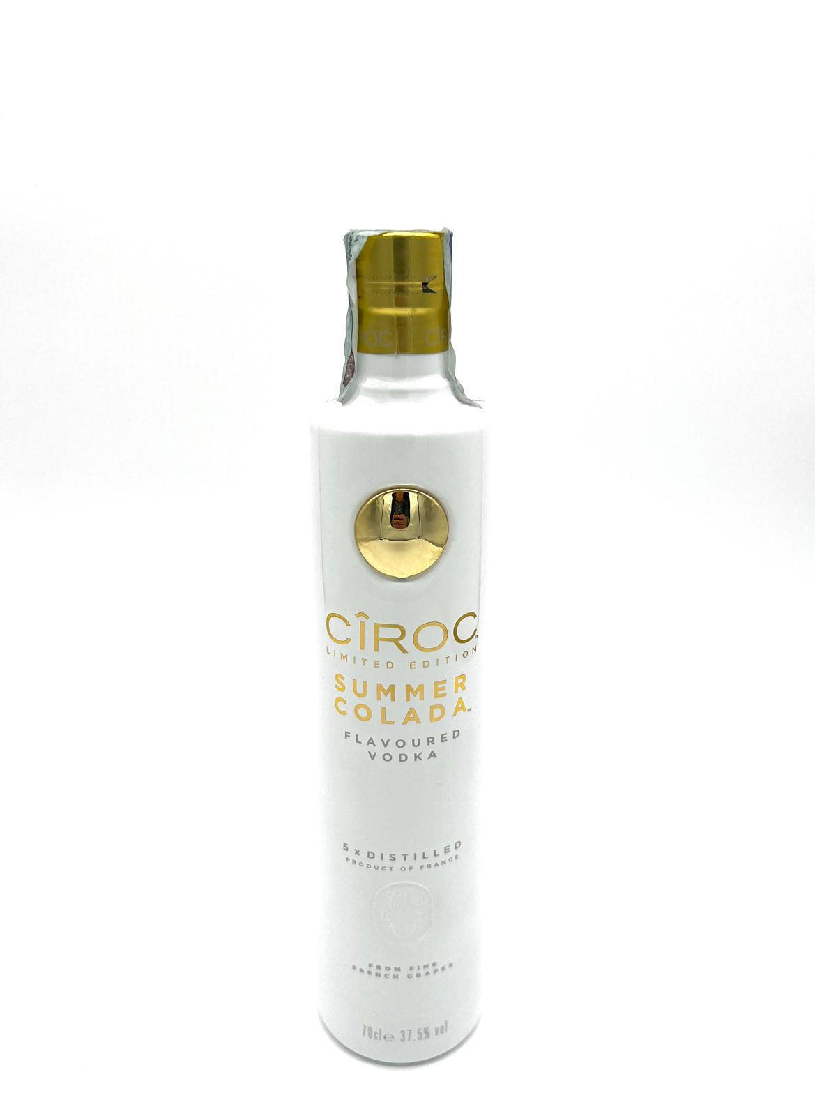 Cîroc Summer Colada è una vodka aromatizzata in edizione limitata, ispirata ai sapori tropicali della famosa piña colada. A base di vodka Cîroc distillata da uve francesi, viene infusa con aromi naturali di cocco, ananas e altri frutti esotici, per un risultato morbido, vellutato e fruttato, perfetto per i cocktail estivi e gli aperitivi più raffinati.